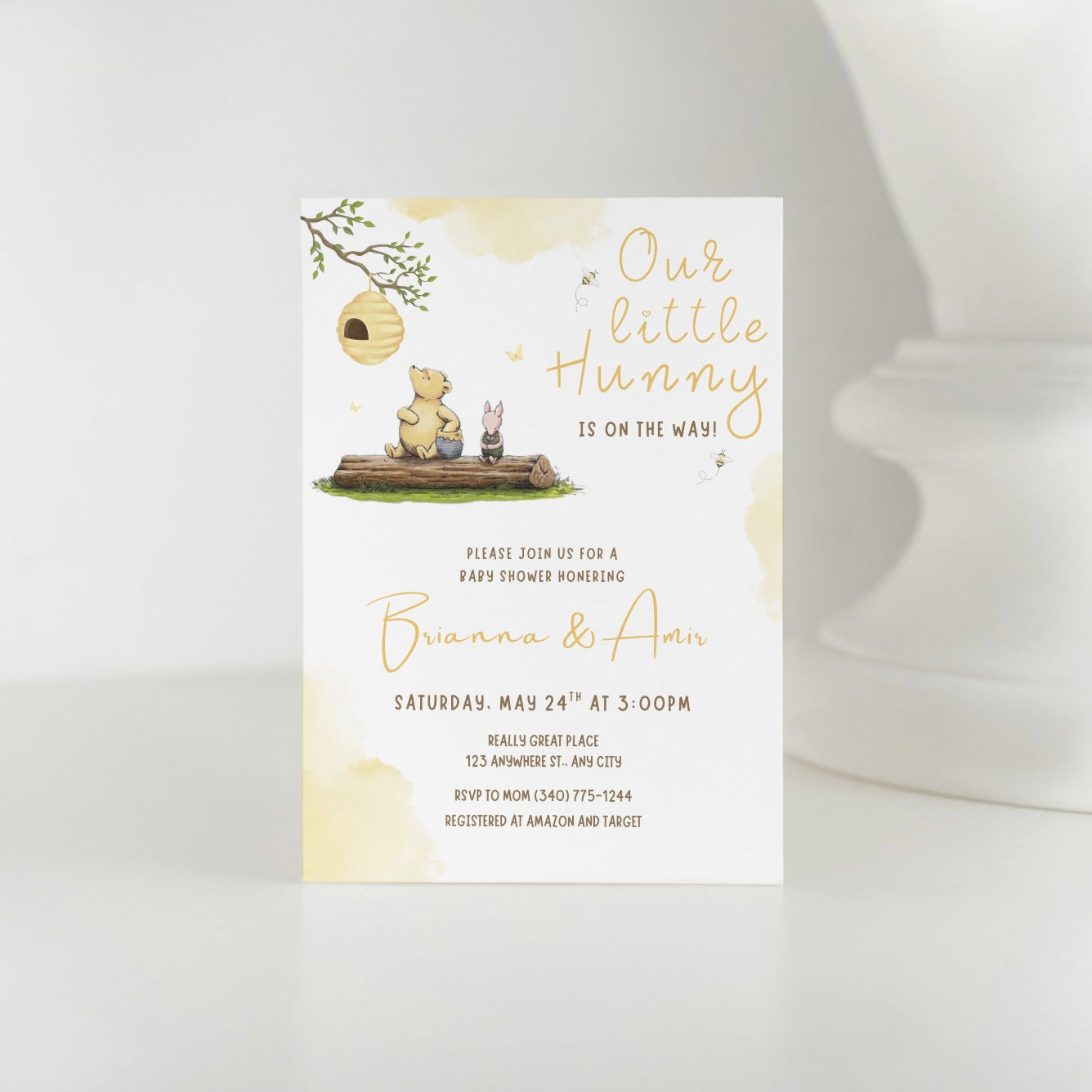 For the little hunny that’s on the way. This fun and vibrant pooh invite sets the tone for an unforgettable baby shower. Personalize the invitation with your party details and share it with your guests effortlessly.