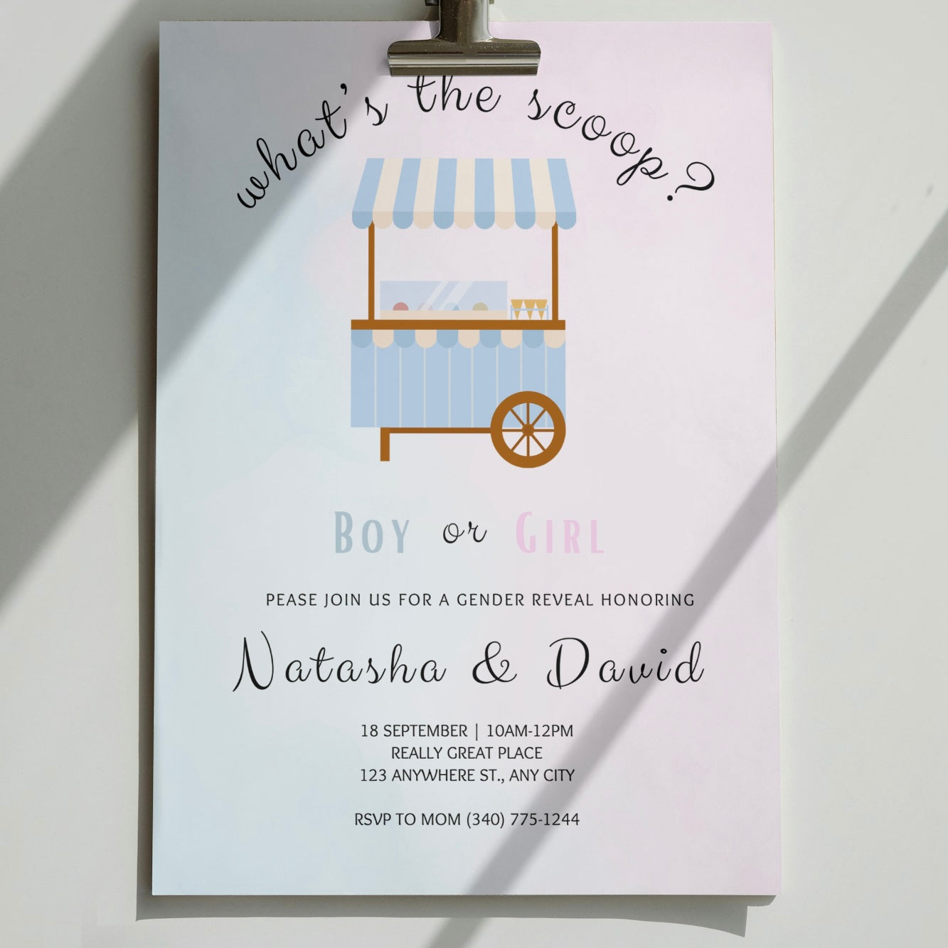 Girl or Boy? This fun and vibrant invite sets the tone for an unforgettable gender reveal. Personalize the invitation with your party details and share it with your guests effortlessly.